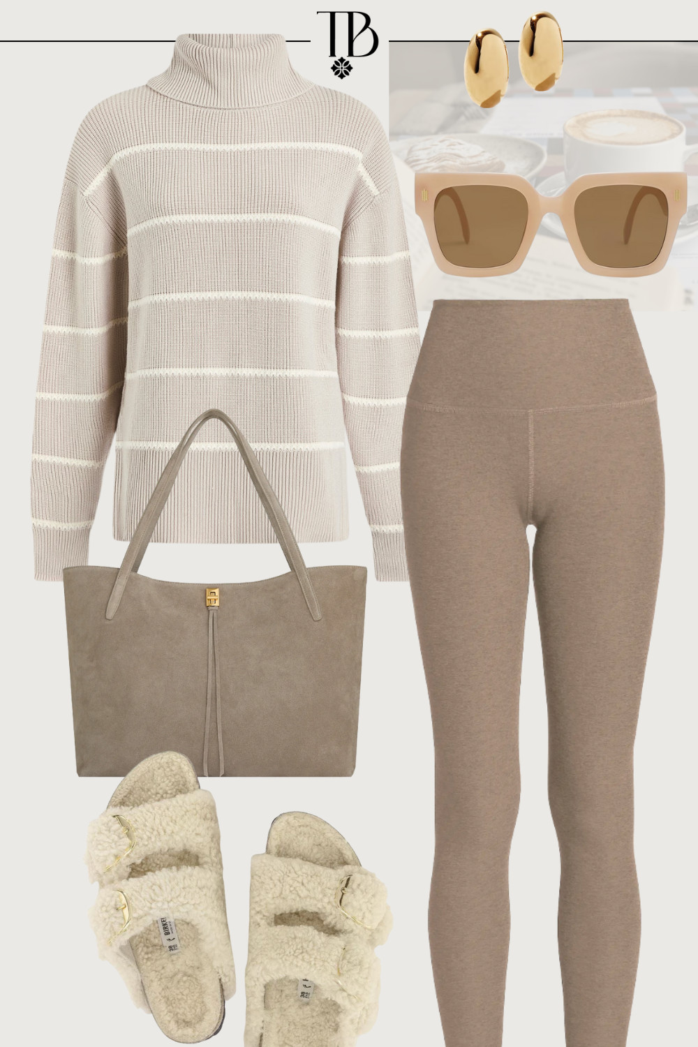 When I tell you I added this entire look to my cart IMMEDIATELY… It’s seriously the epitome of elevated everyday ease. The knit sweater can be easily dressed up or down throughout the fall and winter seasons, making it a seasonal staple. I’ve paired it with neutral leggings and shearling sandals for a chic and casual everyday look. Perfect for errands, coffee runs, you name it!