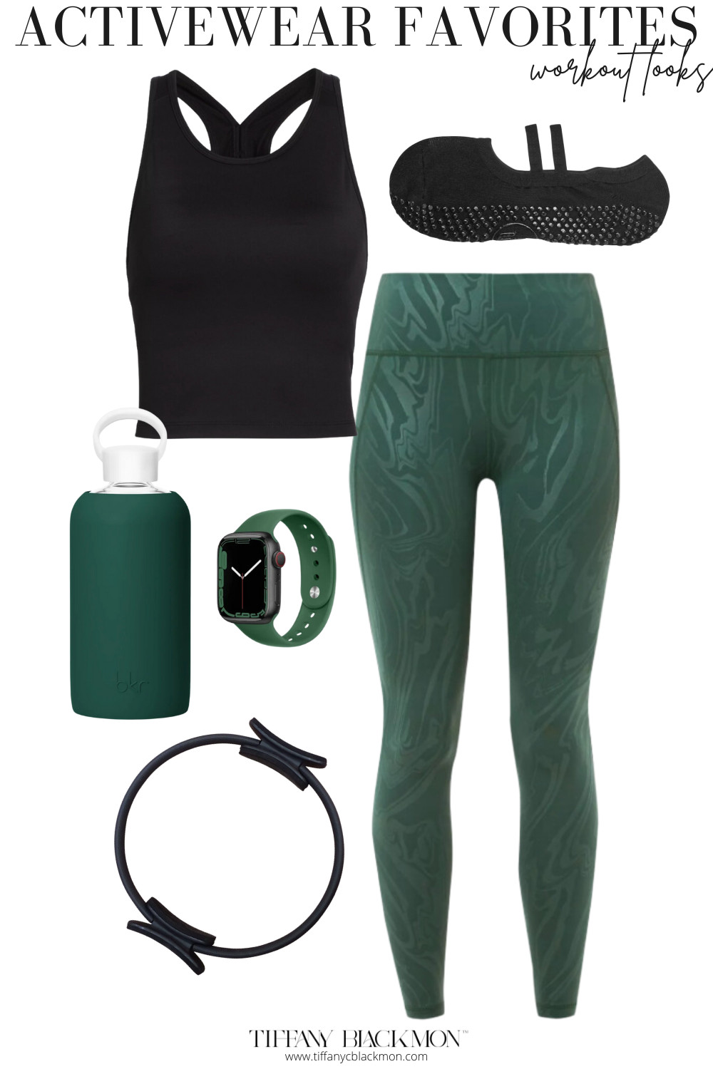 This is the quintessential Pilates look… even down to the magic circle and grip socks (two of my favorites)! I do reformer pilates twice a week and love the mental clarity and physical results. Pair this look with black sneakers for a strength training day.