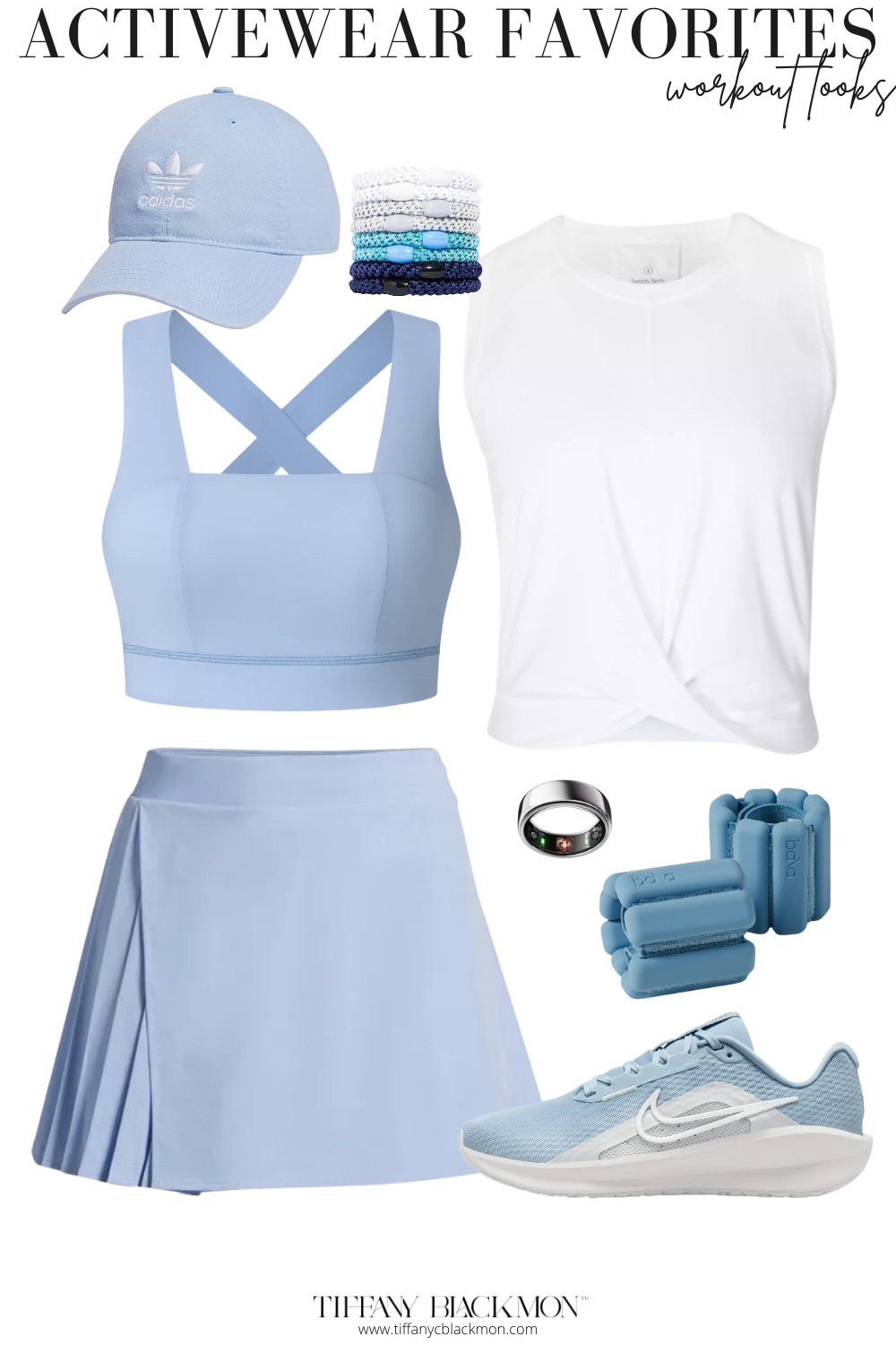 This look is perfect for your next neighborhood walk! Pair these beautiful shades of blue with weighted bangles for added resistance! Pssst… this fabulous skort is under $13!