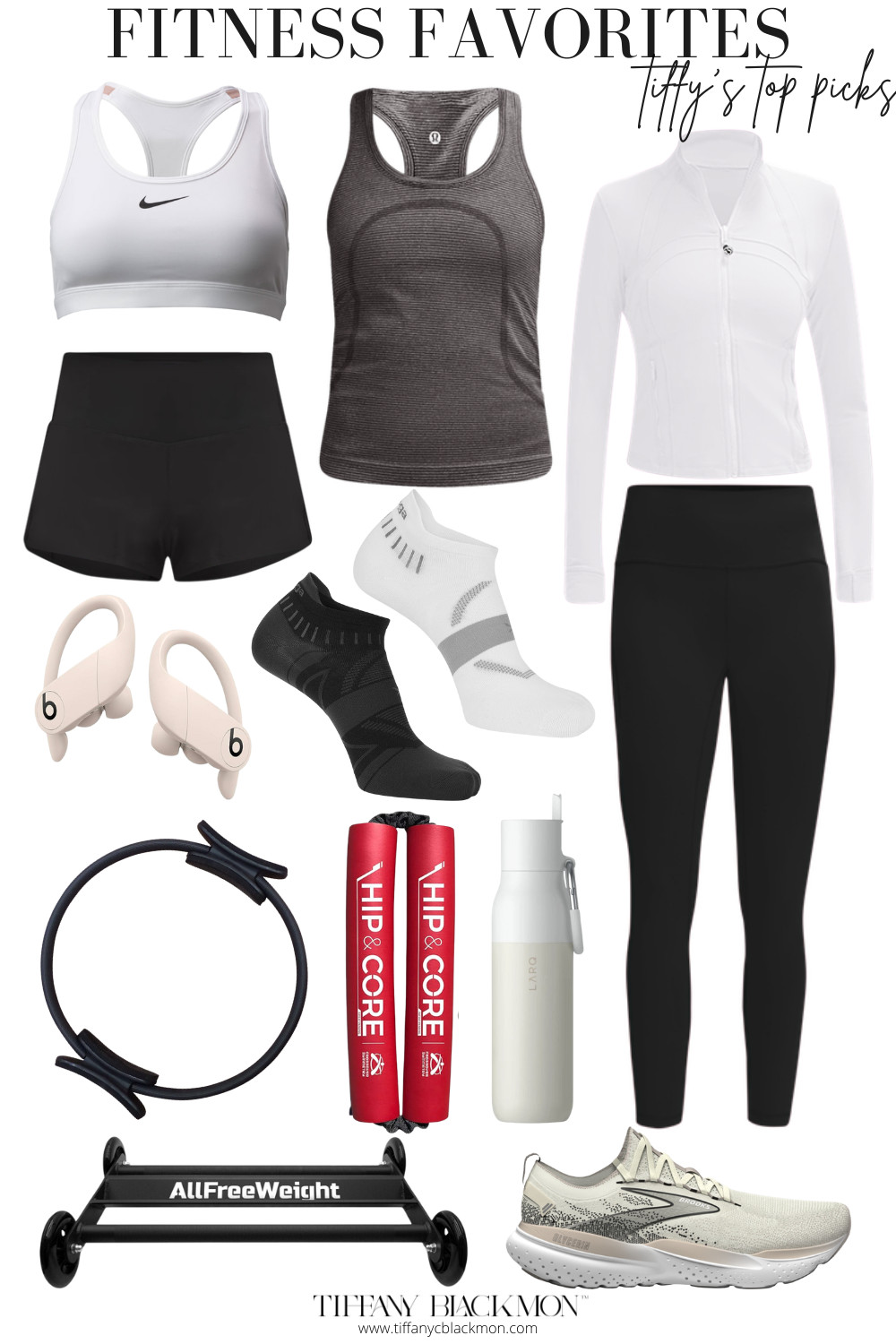 Though my list of favorites is quite extensive, I thought I would share a few of the clothing and workout items that I rotate most frequently. I love that this jacket is light enough for everyday use; I pair it with my favorite leggings or shorts almost daily. I’ve also worn these socks for years and love that they actually stay in place. My LARQ filtered water bottle has been a game changer as well!