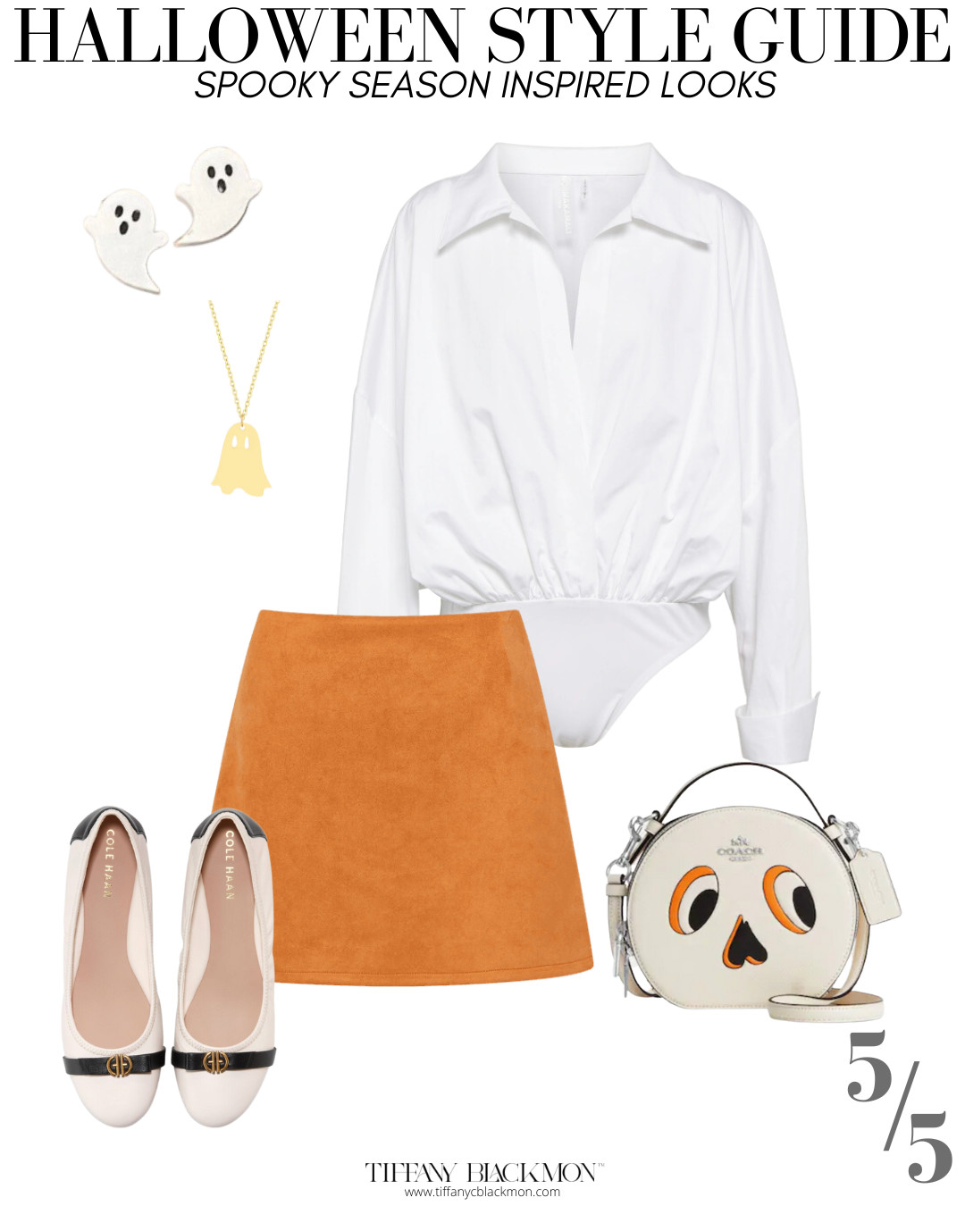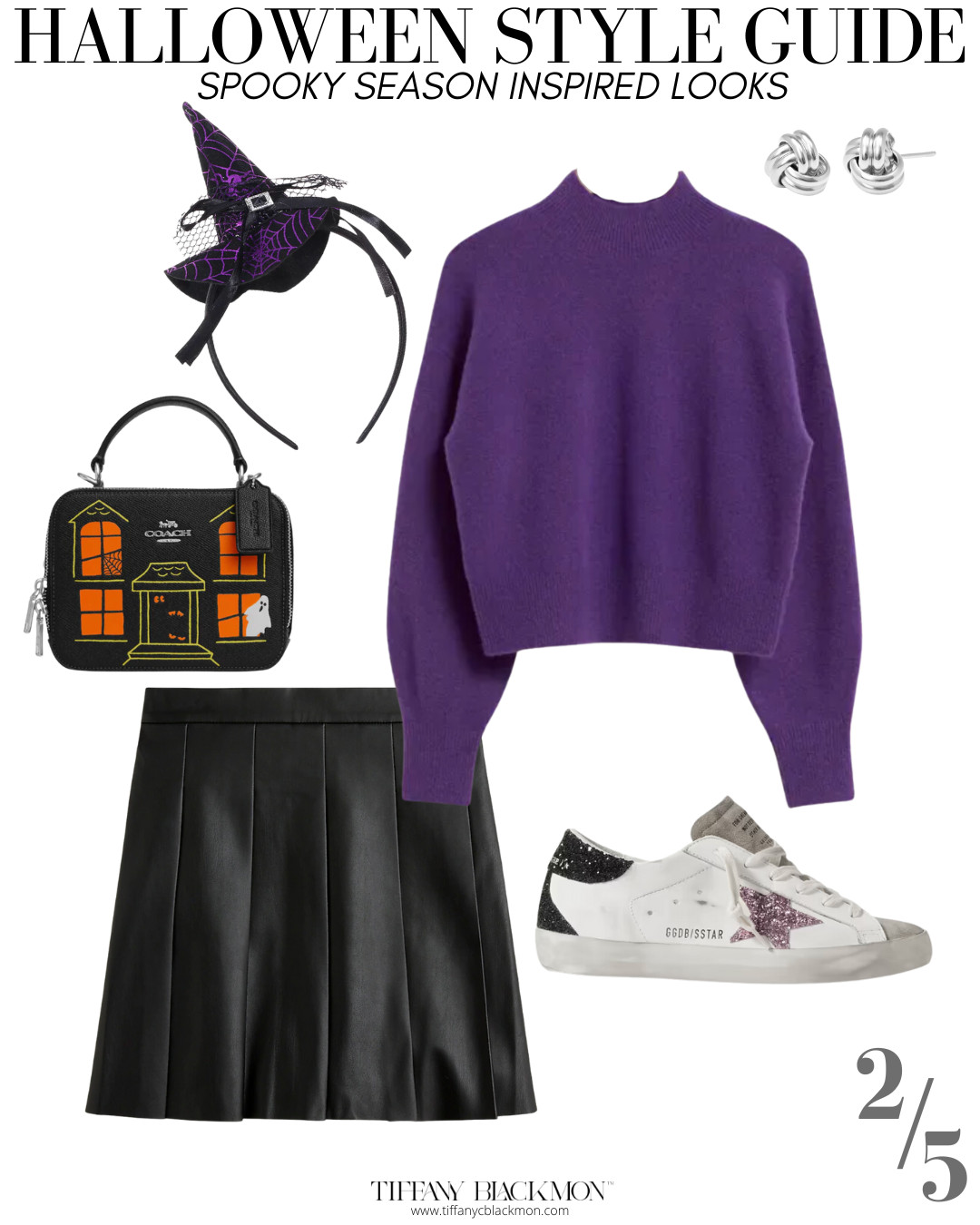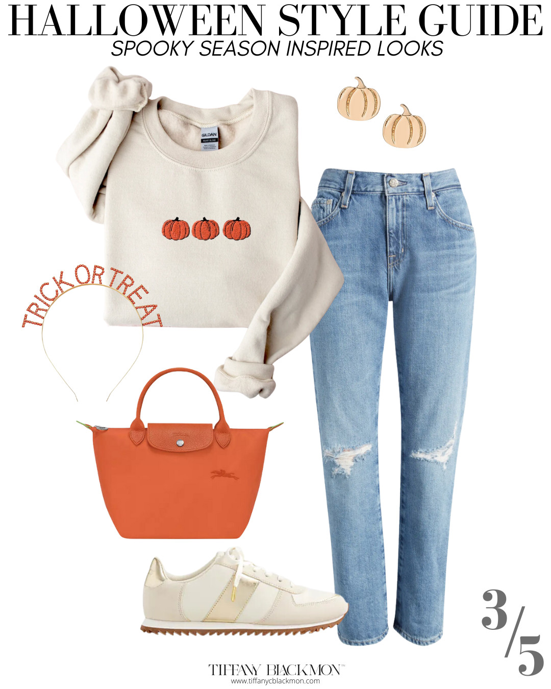 We’re just over a week away from Halloween… which means it’s time to get spooky! I love finding little ways to incorporate each holiday into my style for the month, and Halloween is no different. There are so many chic and stylish Halloween-inspired outfit options that break free from traditional costumes… allowing you to celebrate Halloween without the fuss of a costume! Jazz up pieces that can be worn year round by infusing hints of Halloween through color, headbands, and other accessories. I’ve curated five looks that are perfect for any Halloween celebration… journeying to a haunted house, taking your children trick-or-treating, or going to a casual pumpkin-carving gathering. Get ready for a bewitching journey into the world of fashion-forward Halloween attire!
