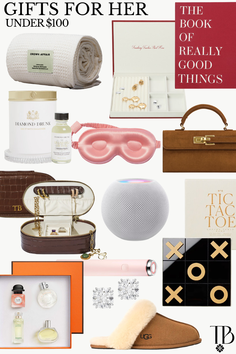 I don’t know about you, but the gifts under $100 category is a great sweet spot for most recipients. This jewelry case is a wonderful option under $55 for the jetsetters in your life. For the beauty lovers, you can’t go wrong with the Crown Affair hair towel or the Medicube mini booster. Lastly, I wear the UGG scuffette slippers on repeat during the fall and winter seasons! I also recommend this brand for fabulous custom finds under $100.