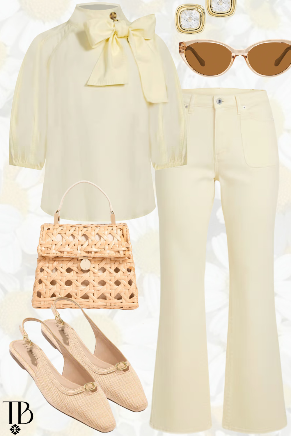 Another butter yellow look for spring? Shocking! I have these jeans in many colors and they’re seriously my go-to. Perfectly stretchy and oh so flattering. I’m also obsessed with this fun bag for a little spring statement!