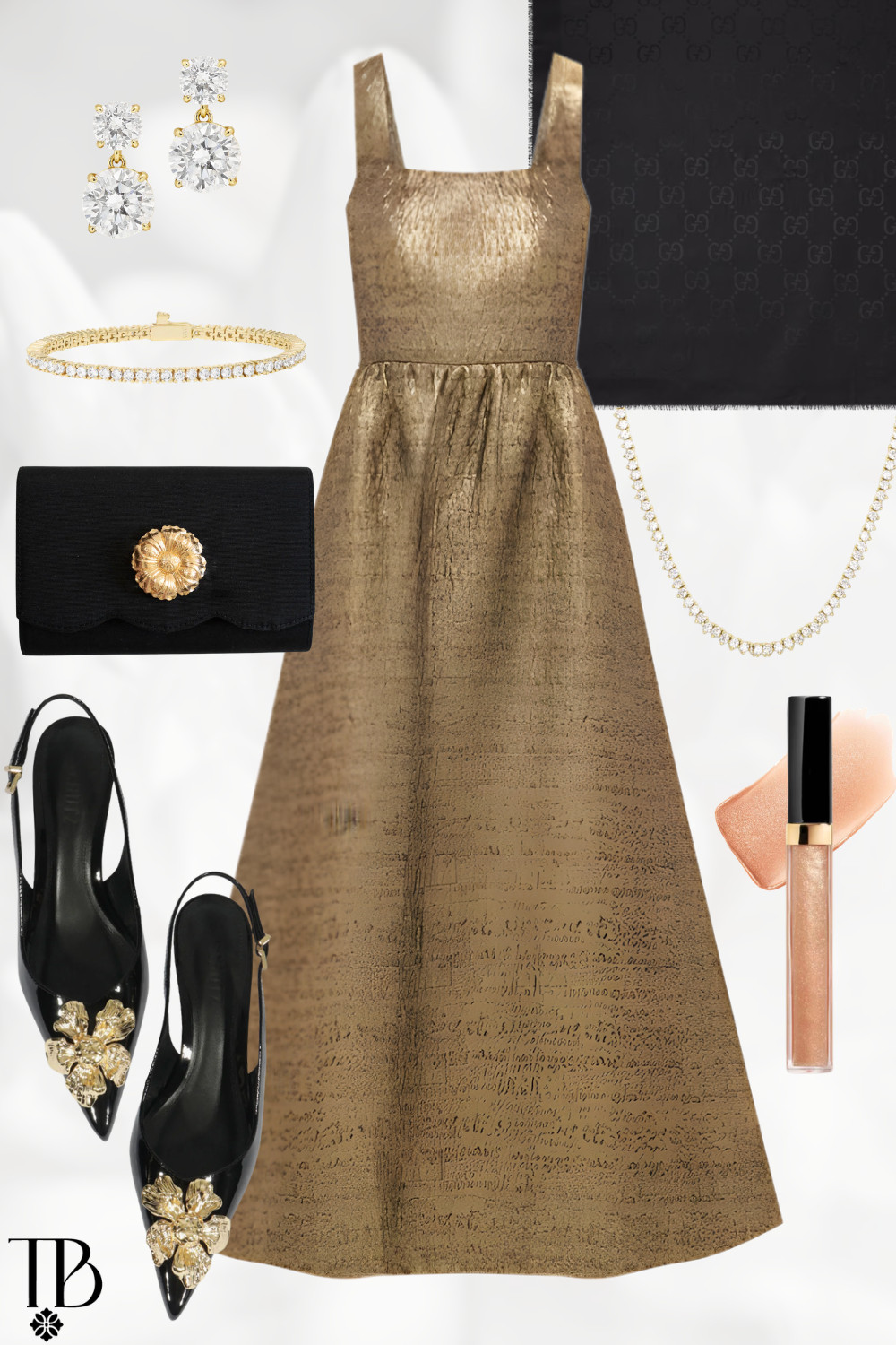 For women, formal and black tie optional dress codes are very similar, with the key distinction typically lying in men’s attire. These dress codes are slightly less rigid than black tie, allowing for a broader range of outfit choices. Women can opt for a formal floor length gown, but it is also perfectly appropriate to show the ankles with a sophisticated midi or tea length dress. Personally, I tend to choose a floor length dress for a more polished and elevated look.
